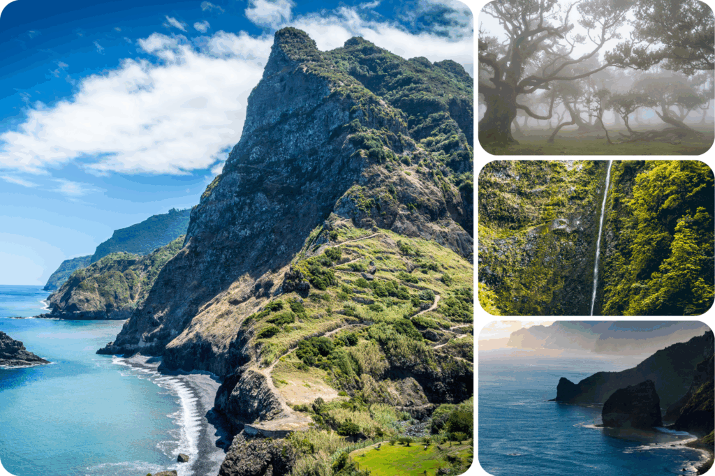 Figure 1: Madeiran Landscapes . Photos by aqualuso, Jérémy Glineur, Daria Agafonova and Ad Thiry – obtained via Canva.
