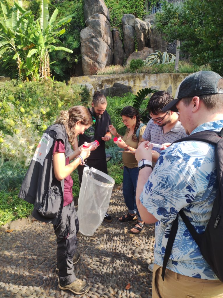 Next the bioblitz moved to the Funchal Natural History Museum. Open to the broader public, including amateur naturalists and local community members, this activity combined indoor exploration of the museum’s insect collections with outdoor sampling in the butterfly garden. Participants learned about insect anatomy, sampling methods, and identification techniques, while also using theiNaturalist platform to document species.