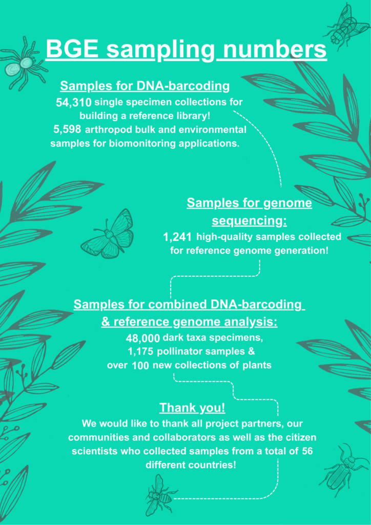 BGE focusses on species of conservation, ecological, and socioeconomic importance in Europe. The selection of what to sample is a core responsibility of the sampling pillar with species gap list analysis and species prioritisation being used to inform the projects’ field and museum sampling campaigns. These were conducted by consortium researchers, and crucially, also through the efforts of citizen scientists and collaborators. Equally important, the sampling pillar has established rigorous protocols to ensure that all samples and metadata were collected systematically, adhering to clear standards and ethical guidelines. Furthermore, synergies between sampling for DNA barcoding and genome sequencing were identified to enable more efficient discovery, reuse, and integration of BGE’s biobanked collections and metadata.