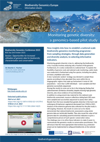 Genetic diversity is the raw material of evolution and is essential for species and populations to adapt to and persist in a changing environment. Systematic monitoring of genetic diversity on a national scale has rarely been undertaken, and relevant experiences first had to be established. We have initiated a pilot study on genetic diversity monitoring in Switzerland, with the aim of assessing genetic diversity indicators for five animal and plant species, thereby gaining the practical experience necessary for setting up a monitoring programme using genomic approaches. Each of the five species occurs in a specific habitat type of national importance and/or in anthropogenically modified landscapes. We sampled >1,200 individuals from >150 populations across all biogeographic regions in Switzerland. For each of the five species, we de novo assembled a reference genome and re-sequenced the genomes of all individuals using short-read technology at approximately 10x coverage. Together, these data allow detailed conservation-relevant analyses, such as, e.g., the identification of runs of homozygosity (ROH), or estimates of contemporary effective population size (Ne). These analyses provide unprecedented insights into temporal changes in genetic diversity or levels of inbreeding in natural populations. With this information obtained from the pilot study, it is now technically possible to carry out national monitoring of genetic diversity using genomics. An ongoing challenge is to develop scientifically sound but intuitive indicators of the state of genetic diversity and the extent of possible change that can be effectively communicated to relevant authorities and practitioners for subsequent implementation in conservation management.